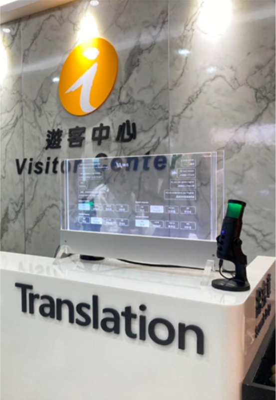 透明ディスプレイとリアルタイム翻訳を組み合わせ、外国人来訪者とスタッフ間のコミュニケーションをサポート