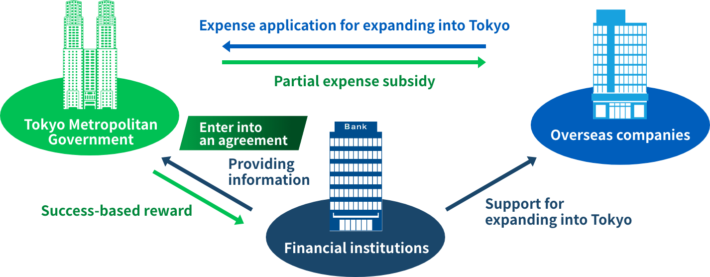 - The Tokyo Metropolitan Government will subsidize a portion of the expenses related to the entry of foreign companies into Tokyo, and success fees will be paid to financial institutions based on performance.